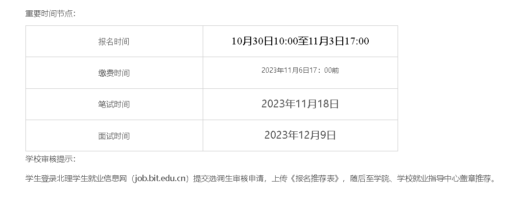 (二)笔试。笔试时间初步定于2023年11月18日,北京理工大学考生须选择重庆考区参考,不得选择其他考区,否则责任自负。笔试科目为《行政职业能力测验》《申论》,每科分值100分,主要测试报考人员的政治理论水平、履职基本能力等综合素质,特别是用习近平新时代中国特色社会主义思想指导分析和解决问题的能力。参加考试时,考生必须同时携带本人准考证和有效身份证。笔试成绩可于2023年11月底登录七一网“选调生考试报名系统”查询。